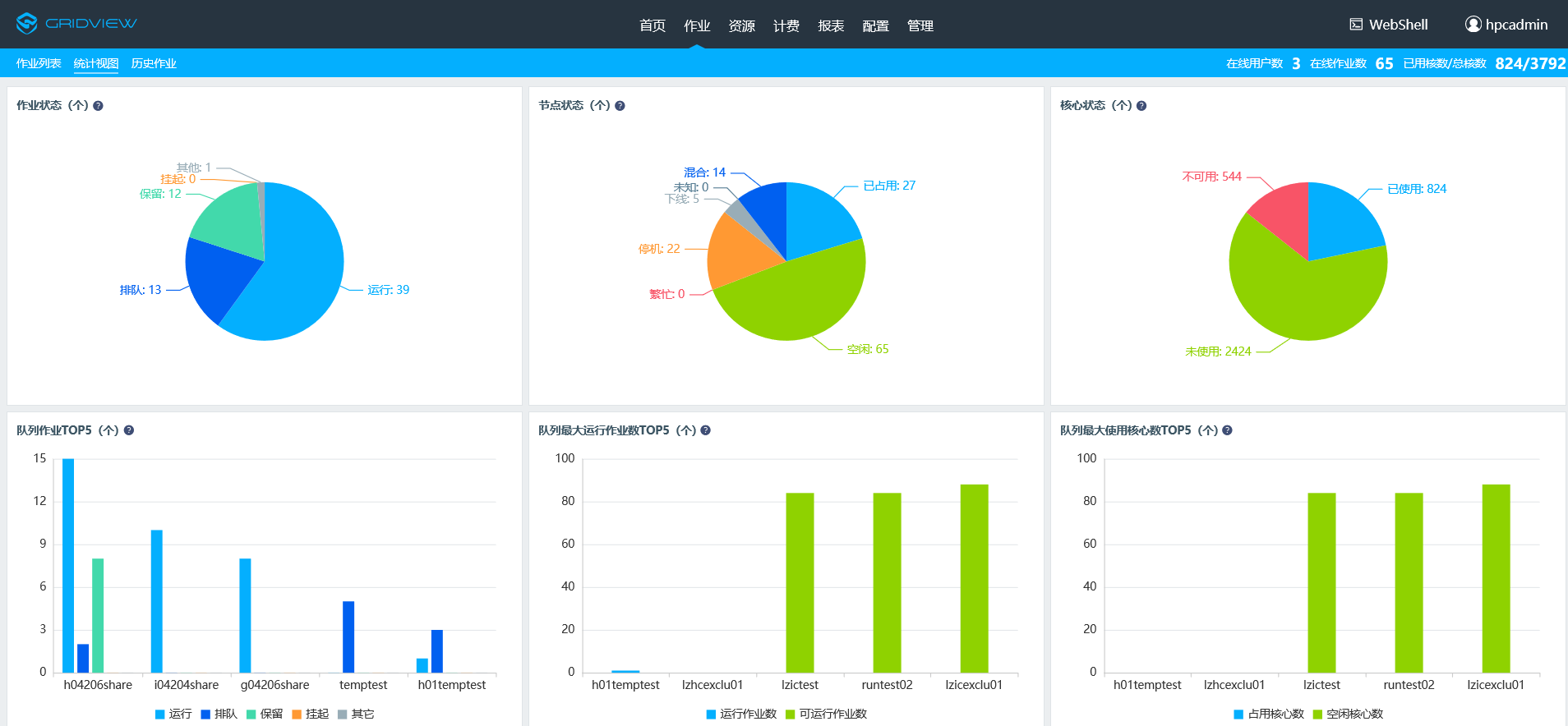 實時監控作業運行狀態、用戶資源使用情況等信息;