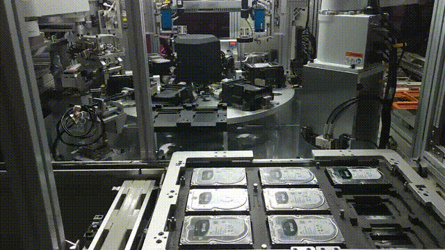 硬盤與硬盤架的組裝人工作業(yè)穩(wěn)定性差,極易劃傷盤片,需要多人協(xié)作完成,耗費(fèi)極大人力。織女星一號(hào)通過(guò)自動(dòng)化方式完成硬盤與硬盤架之間的組裝,提升了生產(chǎn)效率,降低次品率,提升了產(chǎn)品的質(zhì)量。 -